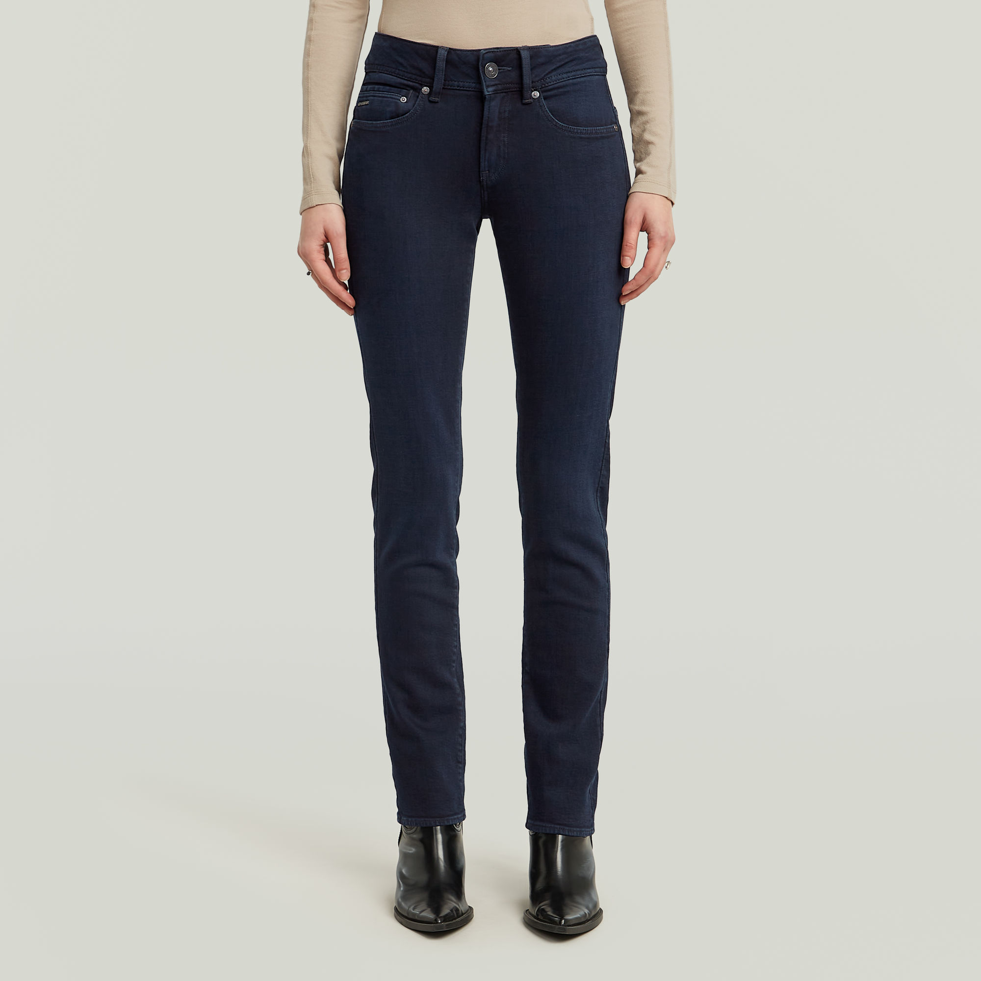 De Midge Straight is uitgevoerd in een slim fit en heeft de klassieke 5 zakken en een verstelbare band aan de achterkant. Gulp met rits,5 zakken,G-STAR label op de achterkant, gemaakt van een papiersoort met een leerlook 98% Katoen (regeneratief), 2% Elastaan,Superstretch,Gewicht 12 oz,3×1 RHT (EAN: 8721135979031)